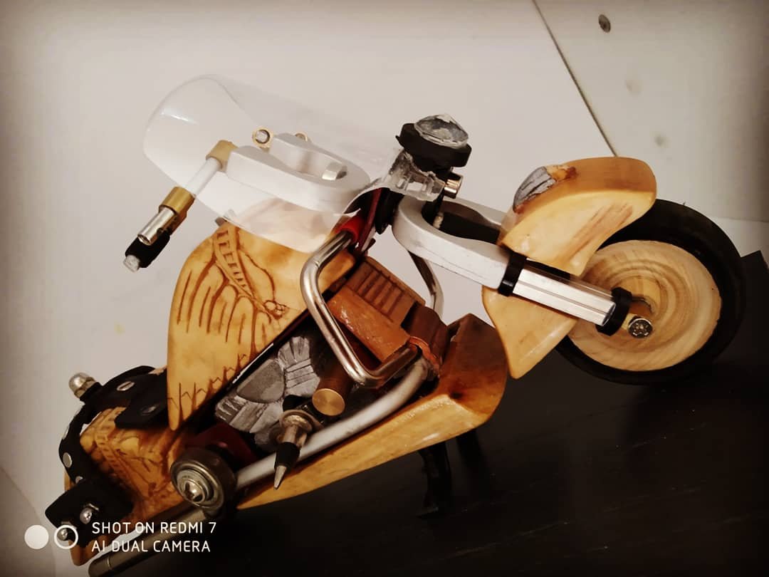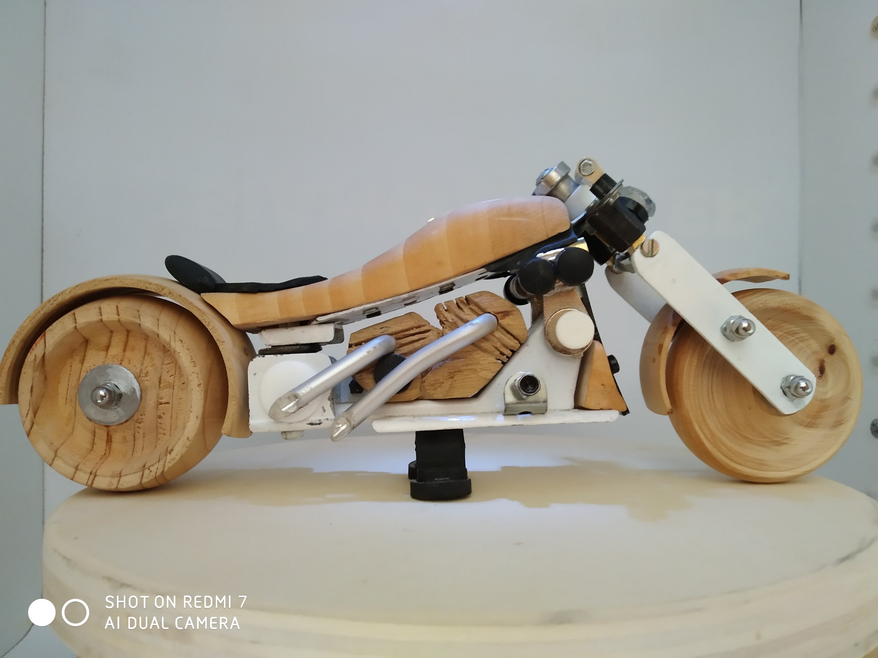 opera n°154 25x6x9 in cedro del Libano,cipresso, framire’ e minuteria di riciclo Tecnica : punta di coltello